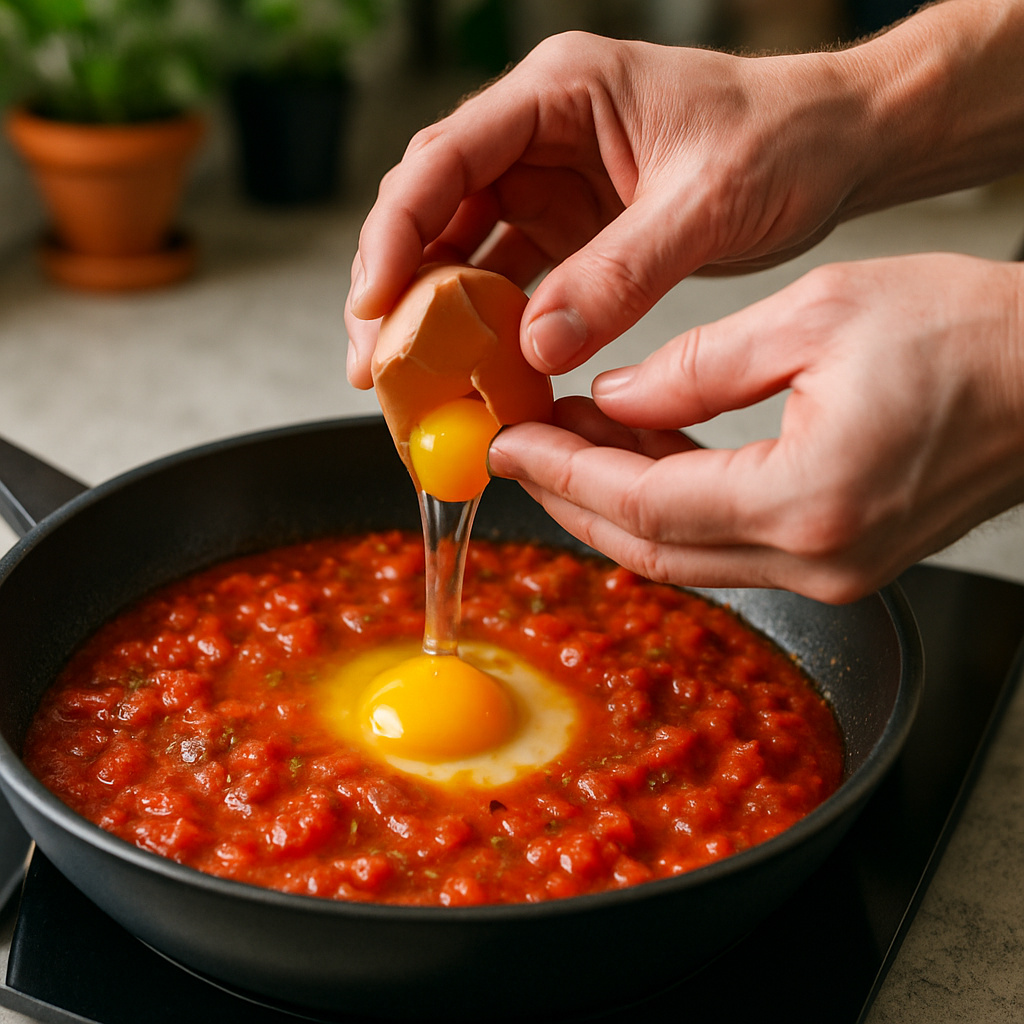- 토마토소스가 너무 묽으면 달걀이 퍼질 수 있어요. 충분히 졸인 뒤 넣는 게 중요해요.