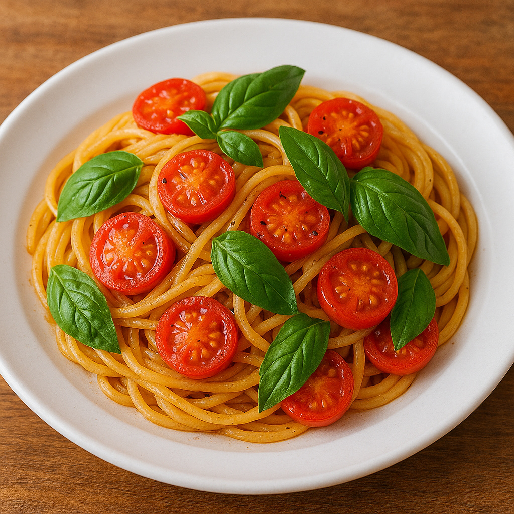 바질 향이 훅 하고 퍼지는 순간, 여름이 입 안에 들어온 느낌이에요. 한참 일하다가 정신 차리고 싶을 때, 혹은 나에게 근사한 위로 한 끼를 주고 싶을 때 자주 해 먹는 레시피예요. 냉장고 속 토마토 몇 알과 마늘, 바질만 있으면 충분하니까요.