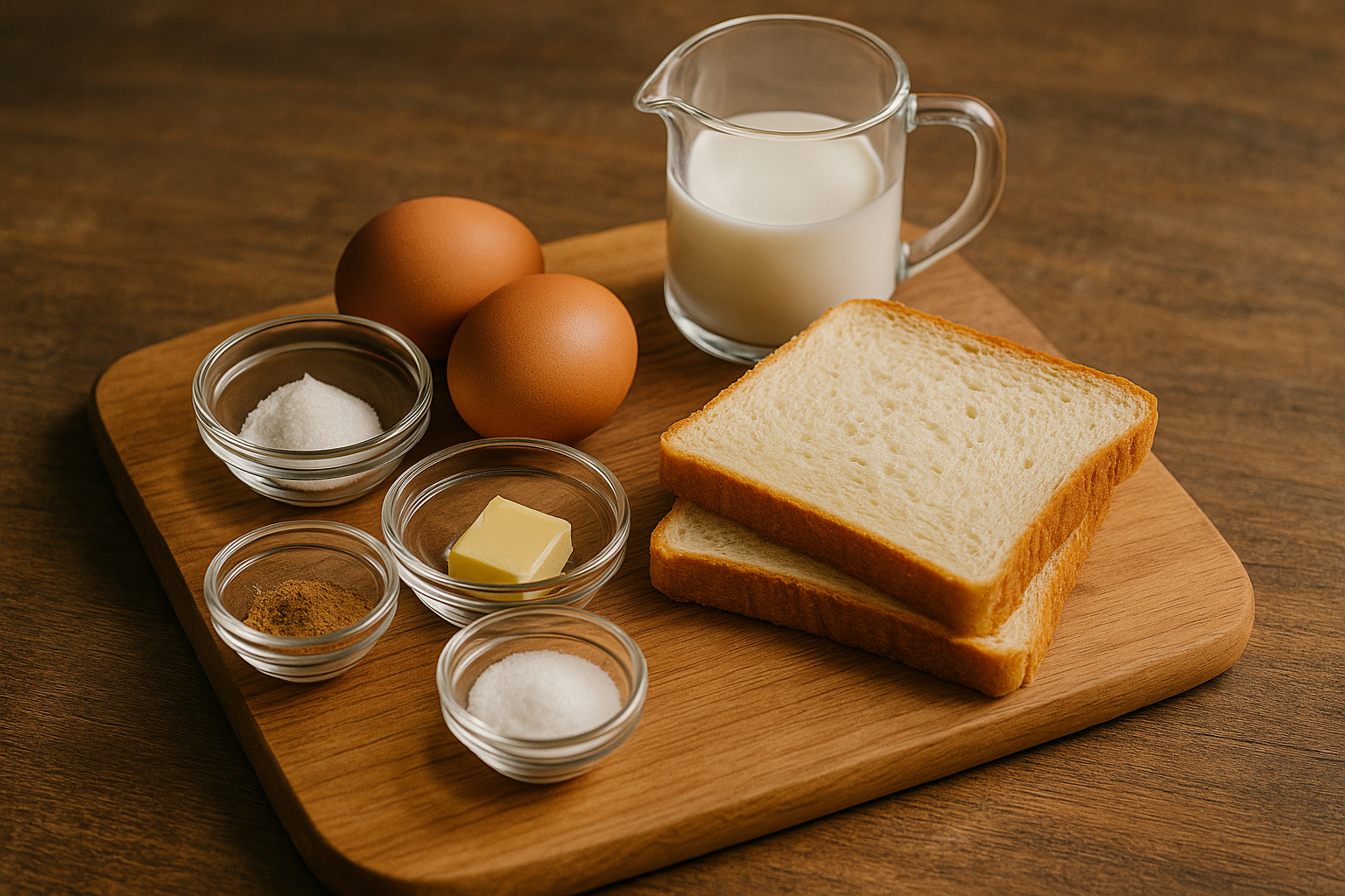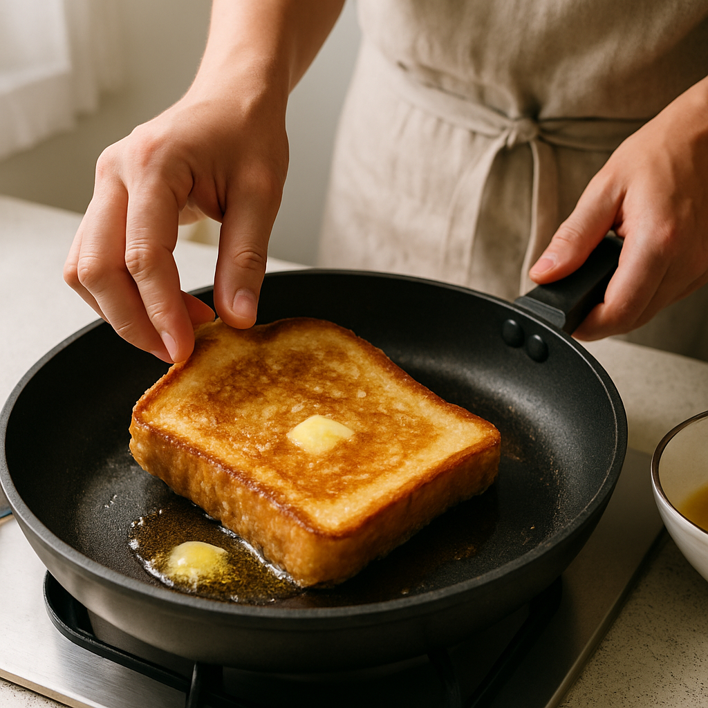 - 식빵은 하루 정도 지난 것을 쓰면 계란물을 잘 흡수해요. 너무 부드러운 빵은 흐물거리기 쉽습니다.