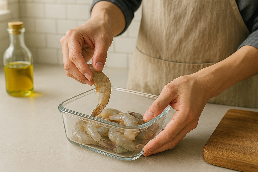 - 생새우 (또는 냉동 손질 새우) – 8~10마리